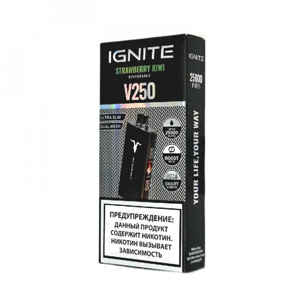 Электронная сигарета Ignite V250 Black 25000 - Strawberry Kiwi (Клубника киви) - купить в Полярном